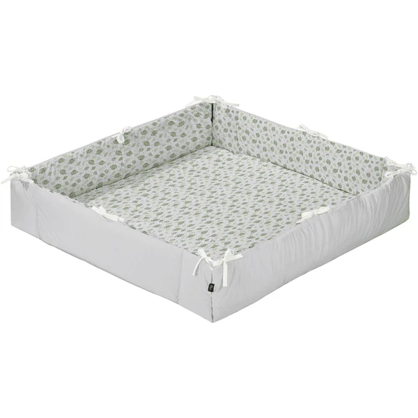 Mooi Alvi ® boxkleed met liefdevol geselecteerde Design , geschikt voor boxen met een breedte van 70 en 100 cm. Hij kan gemakkelijk met riempjes aan de box worden bevestigd en biedt zo optimale bescherming. De dikke vulling met puffy holle vezel is perfect om te spelen en te dromen. Materiaal: 100% biologisch katoen Vulling: 100% polyester Wasbaar tot 40 °C Drogen in de droogtrommel, thermisch gereduceerd (één punt)