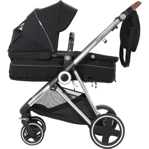 De bij de set inbegrepen draagzak voor baby’s van groep 0+, inclusief Adapter , biedt een extra praktisch gebruik in het dagelijks leven. Ook inbegrepen in de set is de ruime reiswieg voor de eerste levensmaanden. Zodra het kind rechtop kan zitten, wordt het zitje van de kinderwagen gebruikt. Hij kan zowel in de rijrichting als tegen de rijrichting in worden gemonteerd.