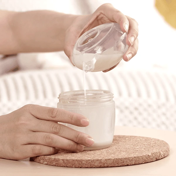 Zorg ervoor dat de dop goed op zijn plaats zit in de tuitopening en deze goed afsluit. Plaats de opening mooi in het midden van uw tepel en knijp zachtjes in de melkhouder zodat u een lichte zuigkracht voelt. Laat het potje gewoon op je borst staan en vang de melk op. Natuurlijk kun je je baby borstvoeding geven aan de andere borst. Verwijder de melkopvangbak wanneer deze vol is of wanneer u de gewenste hoeveelheid melk hebt opgevangen. Trek de dop uit de tuit en giet de melk in een voorraadbeker of fles. “Overtollige melk kan gemakkelijk in de vriezer worden bewaard. Zorg ervoor dat de tuitopening open is (de stop mag de opening niet afsluiten). Plaats de melkhouder tussen uw borst en uw beha. Controleer of je tepel mooi in het midden van de opening zit, pas de positie van het bakje aan tot je je comfortabel voelt en laat dan gewoon de melk stromen. Verwijder de melkopvangbak wanneer deze vol is of wanneer u de gewenste hoeveelheid melk hebt opgevangen. Giet de melk in een voorraadbeker of fles. “Overtollige melk kan gemakkelijk in de vriezer worden bewaard.