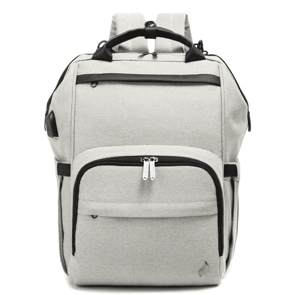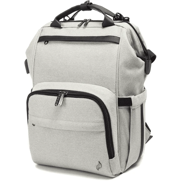 De combinatie van stijlvol kunstleer en waterafstotende stof maakt de BackPack niet alleen tot een echte blikvanger, maar ook heel praktisch. De vele binnen- en buitenvakken bieden voldoende ruimte voor babyflesjes. Maar ook aan de ouders is gedacht: via een geïntegreerde poort in het zijvak kunt u aden opladen en tegelijkertijd uw mobiele telefoon gebruiken.