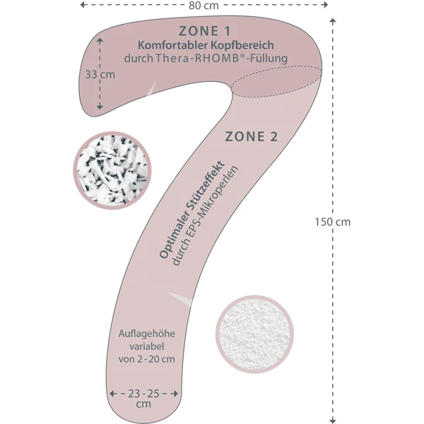 - Vulling in twee zones: microparels & Thera-RHOMB voor een perfecte pasvorm en stabiele ondersteuning plus zachte fleecevulling voor comfort en gezelligheid.