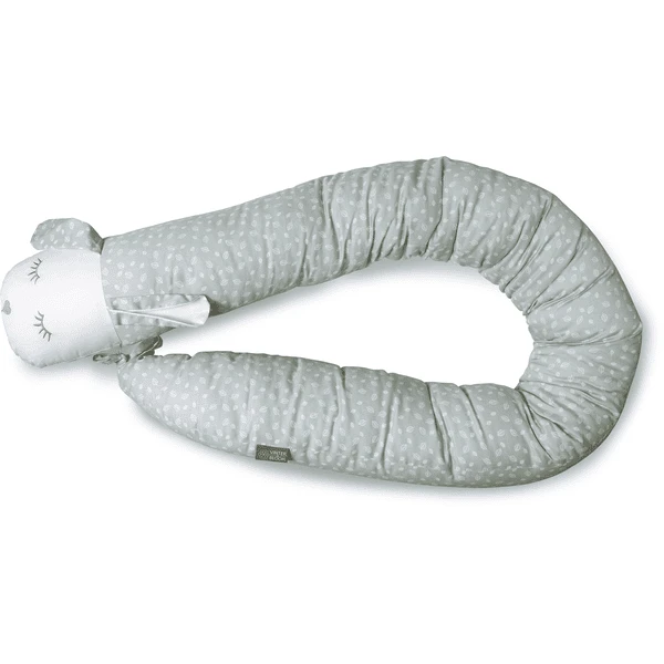 Bumper Buddy is een lang slangenvormig kussen dat op vele manieren kan worden gebruikt tijdens de zwangerschap en na de geboorte. Het is perfect als zwangerschapskussen of zelfs als borstvoedingskussen. Tegelijkertijd dient het als een zachte en beschermende bumper voor het wiegje van de baby. Wanneer je lieveling opgroeit, zal het slapende konijn een schattig knuffelvriendje blijven.